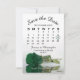 De vackra "Save the Date"-korten har ett fantastiskt foto av en enda utstött grönt färgad ro som reflekterar i vatten med vinkara och kramper. Kortet innehåller en kalender med ditt bröllop-datum i ett hjärta. Snygg romantisk design.