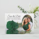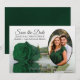 De här vackra korten är perfekten för att låta dina vänner och din familj veta att spara datumet för ditt kommande bröllop. De har en romantisk design med en enda, långvarig framväxande grönt färgad ro som reflekterar i bassäng i vatten med vågar och gevär med ditt foto i en ovalformad ram. Rubriken läser Spara datum med utrymme för namnen, datum och plats.