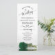 Detta vackra bröllopsprogram har en elegant med en enda, utdragen grönt färgad ro som ljuger på sin sida och reflekterar i vatten. Rubrikerna är skrivna i finare-manusjografi, och det finns utrymme för din ceremoni och bröllopsfest, samt ett kort-tack för dina gäster. Underbart sätt att välkomna dina vänner och din familj till bröllop firande.