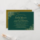 Detta vackra inbjudningskort för möhippan är både enkelt och elegant. Den har guld på en grönt med framväxande bakgrund med latinska faux-folier från guld eller filigree i hörnen. Den har information både om duschen och om OSA och register. Perfektens sätt att fira bruden att vara i stil!
