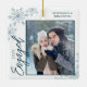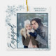 Denna vackra julprydnad är en perfekt gåva till det nya förlovaden paret. Utformningen har ett foto ram med handskriven text "Engaged" och accentueras med ljusblå snöflingor. Anpassa med ett bilder av paret, deras namn och år.