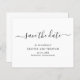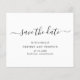 Enkelt bröllop spara datum utan fotobudget med en ren och minimalistisk utformning som ger eleganten en beröring med "spara datumet" i skript med dekortecken. Ett modernt svartvitt Spara datum utan bilder som på ett utmärkt sätt koordinerar med stil i bröllop.
