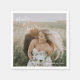Moderna bröllop-blöjor med en enkel design som visar namnen av bruden och brudgummen i ett handskrivet skript i elegant över den översta lämnat sidan och bröllop-datumet i högerna grund, över ditt favoritfoto. Den chic handskriften ger en romantisk beröring till denna minimalistiska utformning. De här pappra servetterna i anpassningsbar är ett underbart sätt att göra mottagningen personlig.