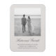 Enkel elegant spara datum magneter med lodräts favoritfoto över en grått-bakgrund. Under bild finns namn i ett skript och bröllop i ett serif-teckensnitt. Bakgrunden färg kan ändras till valfritt färg. Den mjuka tonen i denna neutralt är perfekt för bröllop i fall eller vinter.