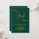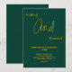 Denna eleganta gröna och gyllene bröllopsinbjudan är perfekt för ett modernt bröllop. Den enkla designen har elegant gyllene kalligrafi på en grön bakgrund.