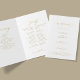 Modern enkel typografisk trendig faux guld och ren vit vikbar ceremoni och party bröllopsprogram-mall med ett kalligrafiskt skript för chic trendig. +++++++++++ Enkel att anpassa med texten på framsidan och insidan!