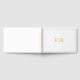 Elegant bröllopsgästbok med en enkel design med ditt två initiala monogram i falskt guld, inuti en ram, på en vit bakgrund. Din information finns också på ryggen. En chic och stilren design som är tidlös. Visa denna klassiska gästbok på ditt soffbord eller bokhylla och ta ut den och läs kärleksmeddelandena när du vill minnas din speciella dag.