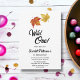 Den här elegantens födelsedagsinbjudan är perfekt för en modern höstfödelsedag. De enkla designfunktionerna passar ihop löv med elegantens svarta och orangens typografi på vit bakgrund.