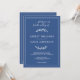 Elegant, modern och enkel bröllopsinbjudning med vit handskriven kalligrafi av chicen och modern typografi på en klassisk blå bakgrund och snyggt med rustiskt bladverk. Lägg bara till dina uppgifter om namn och bröllop. Enbart designad för dig med Lycklig Dolphin Studio. Kontakta oss på happydolphinstudio@outlook.com om du behöver hjälp eller matchande produkter. Vi är lycklig för att hjälpa dig att göra bröllop till den vackraste dagen!