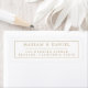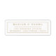 Elegant, enkel bröllopsreturadressstämpel, i en modern minimalistisk design, med brudens och brudgummens namn i stilfull serif-skrift typografi med en elegant kant i kombination med en anpassningsbar avsändaradress i ett trendigt teckensnitt för en chic, sofistikerad känsla i klassiskt guld och vitt.