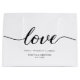 Gör en påstående med vår "Elegant Simple Kärlek Script Bröllop Anpassningsbar Large Gift Bags". Höj dina bröllopsfavörer till en ny nivå av sofistikering och elegans genom att anpassa dessa presentpåsar med namnen av bruden och brudgummen, ett hjärtligt tack till ert budskap och datumet för er speciella dag. Vår design har ett modernt typsnitt som på ett vackert sätt spådomar ut "Kärlek" i ord och lägger till lite romantik och känslor till dina bröllopsfavoriter. Med ett klassiskt svart och vitt motiv från bröllop färg, är dessa presentsäckar tidlös elegans och enkelhet, och skapar dem en perfekt matchande för alla bröllop teman. Utformningen av ren chic och garanterar att dina bröllopsfavoriter framträder i stil och skapar ett varaktigt intryck på dina gäster. De här stora presentpåsarna ser inte bara ut som elegant utan ger även gott om utrymme för alla dina speciella gåvor. Vare sig du lägger ut keepsakes, små symboliska tecken av uppskattning eller vackra slitningar är de här påsarna perfekten för att visa din tacksamhet mot dina nära. Anpassa varje väska med namn från lycklig-paret, ett uppriktigt tack till er och datumet för bröllop. Genom att göra detta skapar ni unika och minnesvärda nyckelfrågor som era gäster kommer att ta hand om långt efter firande. Vår "Elegant Simple Kärlek Script Anpassningsbar Large Gift Bags" är mer än bara en förpackning. De är ett uttryck för kärlek och uppskattning för de vänner och den familj som i er glädjedag. Dina gäster kommer att beröras av personanpassningen, som visar hur mycket du värdesätter deras närvaro och stöd. Låt de här presentsäckarna bli en omhuldad del av er resa i bröllop, som symboliserar kärlek och engagemanget för er och er partner. Vare sig de används för bröllopsfavoriter, välkomna presenter eller tack vare dina symboliska mynt, tillför de en aning elegans och tanksamhet till alla detaljer i din bröllopsdag. Skapa ett minnesvärt intryck av eleganten med våra presentsäckar i personligen, ett vackert tillägg till er firande i bröllop som återspeglar er kärlek och tacksamhet.