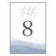Eleganta kustnära bordsnummer för din bröllopsfest eller speciella tillställning har en genomskinlig dammig blå vattenfärgsgradient längst ner med en graciös kurva som frammanar ebb och flod i havet.