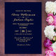 En elegant marin blått med guld textinbjudan.