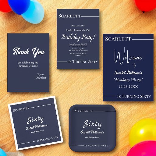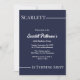 Den här elegantens kallelse till marinblått och vitt födelsedag är perfekt för en modern födelsedag. Den enkla designen har eleganten vit kalligrafi på en marinblå bakgrund.