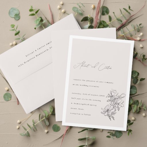 Elegant enkel med konturblommor och Gräns Tilläggskort