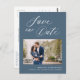 Enkelt minimalistiskt blått foto med slö sparar datumet på vykortet. Hitta fler matchande utformningar och variationer från min "blissweddingpaperie"-butik. Och kontakta mig gärna för ytterligare anpassning eller matchning av objekt.