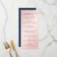 Elegant marinblå och rosenskiftande bröllopsmeny med ett modernt script-teckensnitt. Matchande föremål finns tillgängliga.