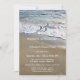 En elegant bröllopsjubileums inbjudan med vågor som flyter på sanden vid stranden.