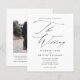 En Elegant Enkel Svart Och Vit Budget Bröllopsinbjudan med modernt skrivstil och klassisk text. Baksidan har ett foto och QR-kod RSVP. Klicka på redigeringsknappen för att anpassa denna design.