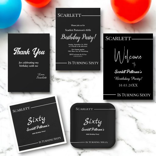 Den här eleganten svartvit napkin är en perfekt för en modern födelsedag. Den enkla designen har en vit kalligrafi med svart bakgrund.