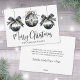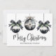 Skicka varma välgångsönskningar med det här eleganta julkortet i platt design, med en minimalistisk framsidesdesign med tre svart-vita akvarellprydnader, kompletterade med grön eternit och detaljer i form av söta band. "God Jul" står skrivet med graciös skrivstil, och ditt efternamn visas under i en klassisk serif-teckensnitt för en personlig touch. Du kan enkelt uppdatera hälsningen till "God Jul" eller "Välgångsönskningar" om du föredrar det.