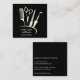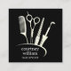 Affärskortet professionell Salon Verktyg ikonen Design Hair Stylist. Visa din expertis med det här affärskortet med kvadratiska hårstilister med anpassningsbar som har en elegant utformning av professionell salon verktyg - saxar, komb, kurling järn och mycket annat. Perfekt för stilistorna som vill ha ett rent, modernt sätt att presentera sina kontaktuppgifter, det här kortet innehåller utrymme för namn, titel och saloninformation på baksidan. Den minimalistiska svarta med vit textlayout erbjuder en snyggt och ett polerat utseende som passar perfekt för nätverk, kundreferenser eller som lämnar bakom på din salon station.