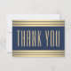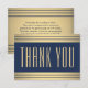 Uttrycklig tacksamhet till familj och vänner för alla tillfälle med elegantens anpassade platta tackkort. Alla formuleringar är enkla att anpassa eller radera. Om du föredrar att ge skrivan ditt tackmeddelande raderar du bara exempeltexten. Den här moderna mallens utformning har elegant guld faux foil, minimalistisk marin blå rand och klassisk vintage konst deco stil typografi. Observera att guld är tryckt på färg, inte metallfolie. Snyggt personlig tackkort gör en tankfull avslutande beröring till alla händelser, firande eller sammankomst.