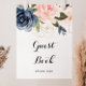 Denna eleganta enkla vinterblomma gästboksskylt är perfekt för ett modernt bröllop eller brudvisning. Designen har vackra handmålade mörkblå, blå, marinblå, rosa, rosafärgade, guldfärgade blommor och grön lövverk, buntade till eleganta buketter.