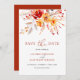 Den här enkla och elegant blommigten faller bröllop, förutom att datumdesignen har en levande och naturlig bukett av blommigtar, löv och bär i solnedgångshus av djupa orangar, persikor och taupes för att skapa en romantisk boho-elegans för bröllop under hösten. Uppvärmningspaletten med blommigtar med vattenfärg framtill är perfekt parad med elegant serif-text på vit bakgrund för att skapa ett starkt och sofistikerat utseende. En orange för rost rik täcker motsatsen för en kompletterande avsluta. Perfekt för att formatera din speciella dag med en elegant fall charm!