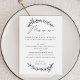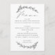 Elegantens svartvit meny med blommigt med ett skript för botaniskt trädgårdsbröllop. Lämpligt för födelsedag / årsdag / Rehearsal middag / Möhippa / Bachelorette party.