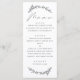 Elegantens svartvit meny med blommigt med ett skript för botaniskt trädgårdsbröllop. Lämpligt för födelsedag / årsdag / Rehearsal middag / Möhippa / Bachelorette party.