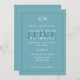 Elegant enkelt Retro Blue med Monogram Bröllop Inbjudningar