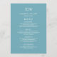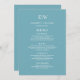 Elegant enkelt Retro Blue med Monogram Bröllop Meny