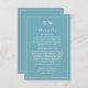 Elegant enkelt Retro Blue med Monogram Bröllop Tilläggskort