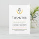 Express your gratitude in style with this Elegant Equestrian Wedding Thank You Card. Featuring a sophisticated black horse head outline framed by a gold laurel wreath, this 5x7 flat card allows customizable names and includes the heartfelt message: "Thank you for celebrating with us" with the added closing in italics: "We are forever grateful for your kindness and support." Back is left blank so that you can include your own handwritten message. Perfect for brides, wedding planners, newlyweds, and party shoppers seeking timeless elegance. Part of the Elegant Equestrian Wedding Suite.