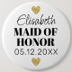 Jolis badges avec une typografiska e élégante et des petits coeurs, à personnaliser avec le nom de vos demoiselles d'honneur pour enterrement de vie de jeune fille.
