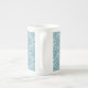 En chic kaffekopp i benporslin med ett etniskt, traditionellt Ogee-mönster i turkos på vit bakgrund som du kan ändra om du vill. Del av Posh & Painterlys 'Boho Bazaar'-kollektion, detta mönster kan enkelt anpassas genom att ändra riktning eller skala på mönsterplattan för en helt annan look.