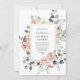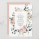 Ett enkelt och känsligt Inbjudningskort för möhippan med ett faux guld ram med mjuk dammig ro rosa blommigt och eukalyptus grönt löv. Du kan ändra texten på menyn Anpassa. Olika typer av papper finns tillgängliga. Kontakta mig om du behöver hjälp.