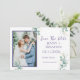 Elegant, moderna, eukalyptus blommor, boho, grey, land, rustik, skript, foto, inbjudningar från Bröllop spara datum. Anpassa den med din information.