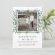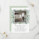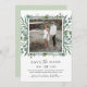 Meddela bröllop i stil med dessa kort från elegant spara datum meddelande med en förlovning som är framtagen av ett modernt svart ram och en ekologisk vattenfärgsgrön design med eukalyptus blad, löv och silver-dollar eukalyptus grenar i mjuka verdant-nyanser av mynta, grönt, oliver och muterad blå grönt - perfekt för en vår eller sommarhändelse. Den koordinerande bakgrunden till den mjuka grönten färg på baksidan av kortet kan ändras till vit eller annan färg via Anpassa.