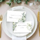 Den här unika botaniska designen har en böjande gren av elegant vattenfärgseukalyptus löv med konstnärliga silver-skisserade löv och vita vilda blommor.
