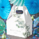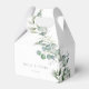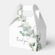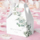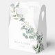 Den här unika botaniska designen har en böjande gren av elegant vattenfärgseukalyptus löv med konstnärliga silver-skisserade löv och vita vilda blommor.