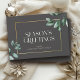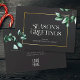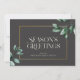 Snyggt, elegantens visitkort för semesterhälsningar som läser SEASON:s HÄLSNING vid sidan av moderna eucalyptus-vattenfärgbilder i en tryckt guld ram-design, ditt anpassningsbar-meddelande på baksidan vid sidan av din logotyp.