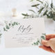 Vackra, ömtåliga eukalyptus foliage bröllop svarar OSA kort. En del av en modern samling.