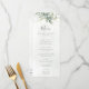 Vackra bröllop-menykort med vattenfärgad eukalyptus och guld löv.