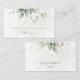 Vackra bröllop-platskort med vattenfärgad eukalyptus och guld löv. Perfektens val för bröllop utomhus.