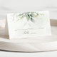 Vackra bröllop-platskort med vattenfärgad eukalyptus och guld löv. Perfektens val för bröllop utomhus.