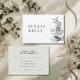 Elegant Eucalyptus Vågrät Bröllop OSA Card med måltider.. Inkludera det botaniska svarskortet för OSA av eukalyptus i ditt bröllopsinbjudningspaket för att se till att dina gäster kan tala om för dig om de kan närvara, hur många som är närvarande och vilka deras måltider är. Kortets baksida innehåller alla dessa uppgifter på en mycket lätt grönt. Kuvert medföljer korten. All exempeltext kan enkelt revideras med egna detaljer i anpassningsmallen.