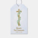 Elegant Eucalyptus och Kor Blue First Communion Presentetikett