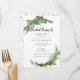 En vacker brunch-möhippa-meny för möhippan firande. Menykortet elegant brunch har en kalligrafisk rubrik med en minimalistisk presentation av menyn. Kortens kom med Blommigten botaniskt stil och löv dekoration.